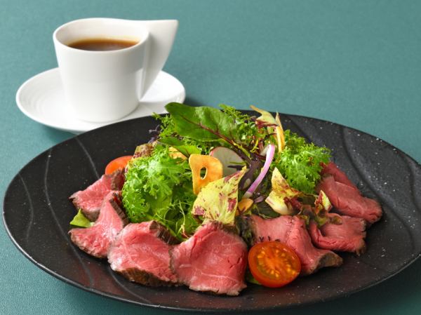 ●阿賀野市産圓山牛のローストビーフ さっぱり和風オニオンソース サラダ仕立て 1,200円