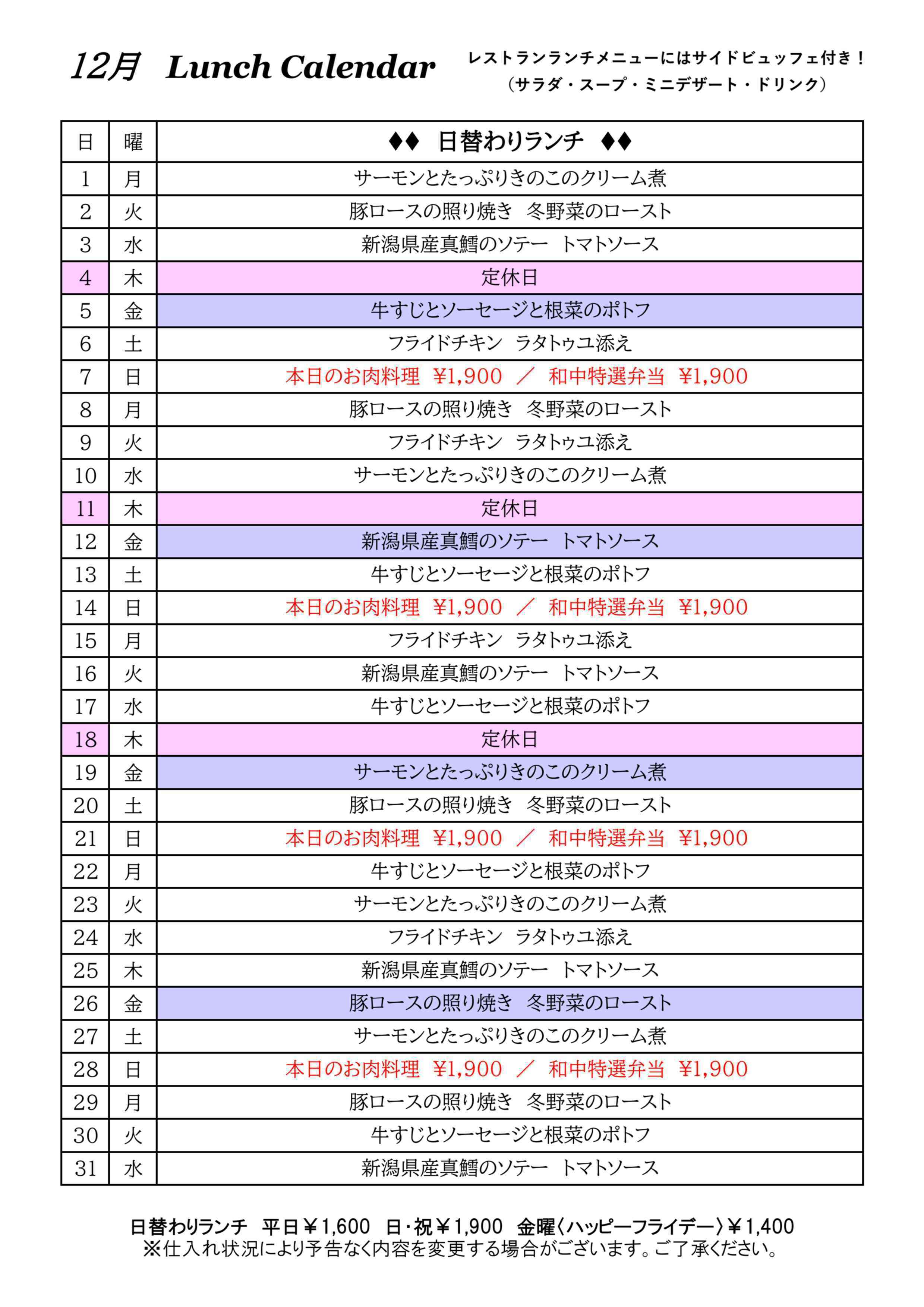 Please enjoy the menu of polished chefs.